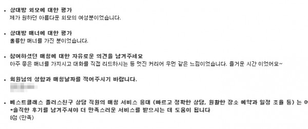 아주 좋은 매너를 가지시고 대화를 직접 리드하시는 등 멋진 커리어 우먼 같은 느낌이었습니다. 즐거운 시간이었어요~ 회원님이 보내주신 만족도 조사입니다. The Class is here, BEST CLASS