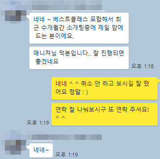 최근 진행 한 소개팅 중 베스트클래스가 제일 맘에 들어요~