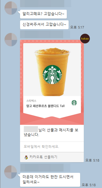 신경 써주셔서 고맙습니다~ 더운데 이거라도 한잔 드시면서 일하셔요~