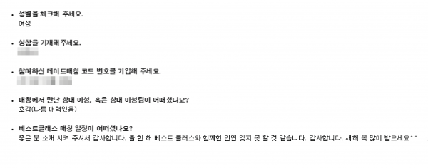 좋은 분 소개 시켜 주셔서 감사합니다. 올 한 해 베스트클래스와 함께한 인연 잊지 못 할 것 같습니다. 새해 복 많이 받으세요… 회원들의 소중한 만족도조사입니다. The Class is here, BEST CLASS