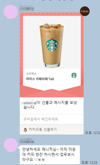 안녕하세요 매니저님~ 아직 더운데 커피 한잔하시면서 업무 보시라고요 '-'ㅎㅎ
