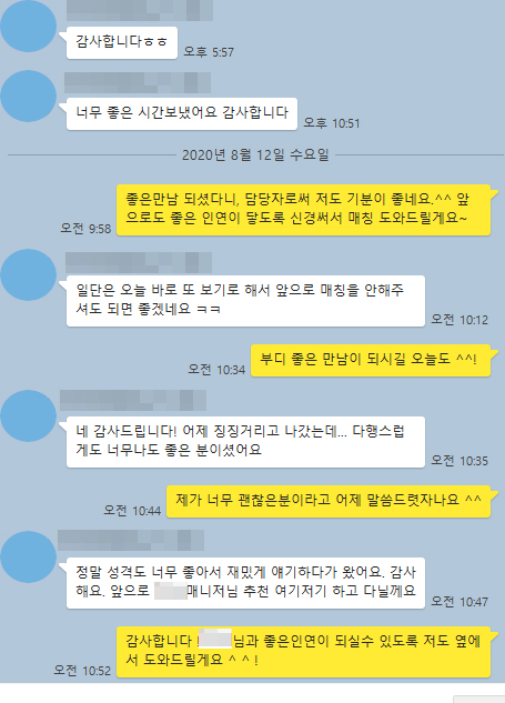 정말 성격도 너무 좋아서 재밌게 얘기하다가 왔어요. 감사해요 앞으로 매니저님 추천 여기저기 하고 다닐게요.