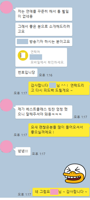 저는 연애를 꾸준히 해서 통 뵐 일이 없네요. 그래서 좋은 분으로 소개해드리려고요.