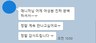 매니저님 어제 여성분 진짜 완벽하셔서 정말 계속 만나고 싶어요ㅜ 정말 감사합니다.