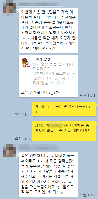 실제로 미팅 진행 후 인증된 남성분들만 소개해 주셔서 더욱 믿음이 가는 것 같아요! ㅎㅎ