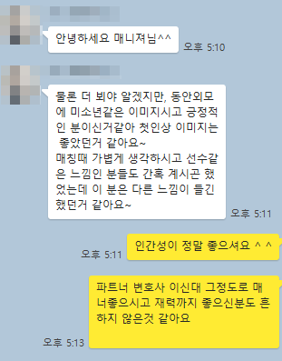 동안 외모와 긍정적인 성격까지 너무 좋았어요 ^^