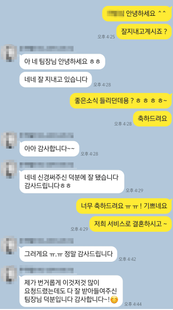 번거롭게 요청드려도 항상 잘 받아주시고 바로 진행 도와주시는 매니저님 덕분에 결혼합니다 ^^