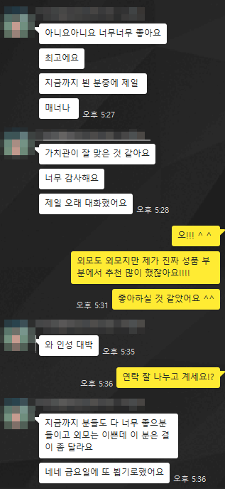 매너와 가치관 모두 저와 너무 잘 맞는 분이신데 외모까지 정말 훌륭하신 여성분이셨어요^^