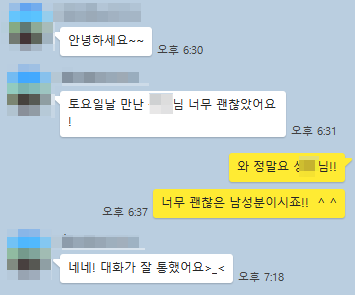대화도 잘 통하고 너무나도 괜찮으신 남성분이셨어요 !